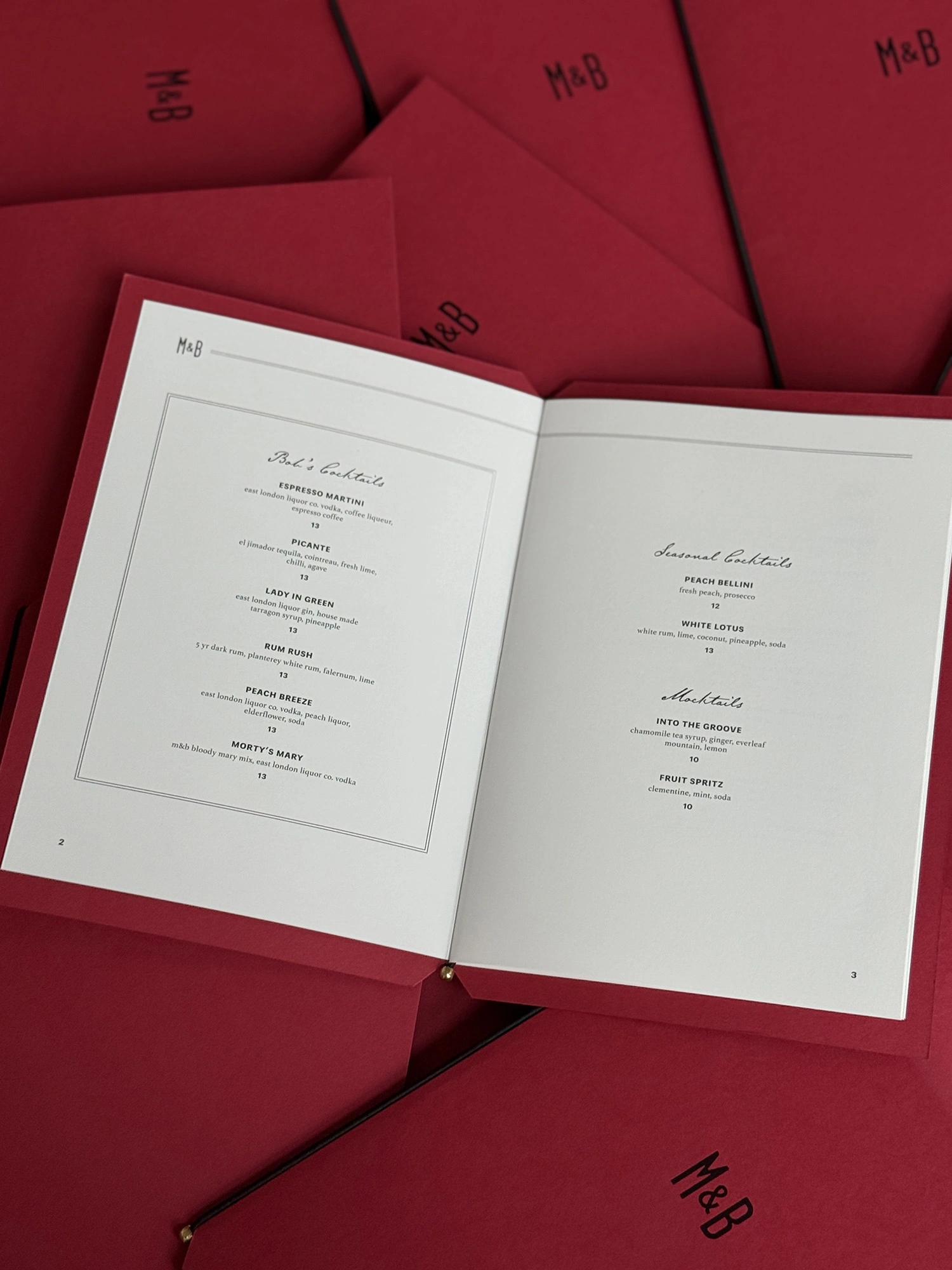 We developed a playful, sexy brand identity with a mischievous backstory: a ‘Bad Cupid’ character who breaks hearts rather than matchmaking. This became the heartbeat of the visual language. The logo features a broken lockup, and we created patterns with cheeky arrow motifs for cushions, menus, coasters and even velvet upholstery. The palette is bold and seductive: deep reds, clarets and dusky pinks. Think late-night glamour with a wink.