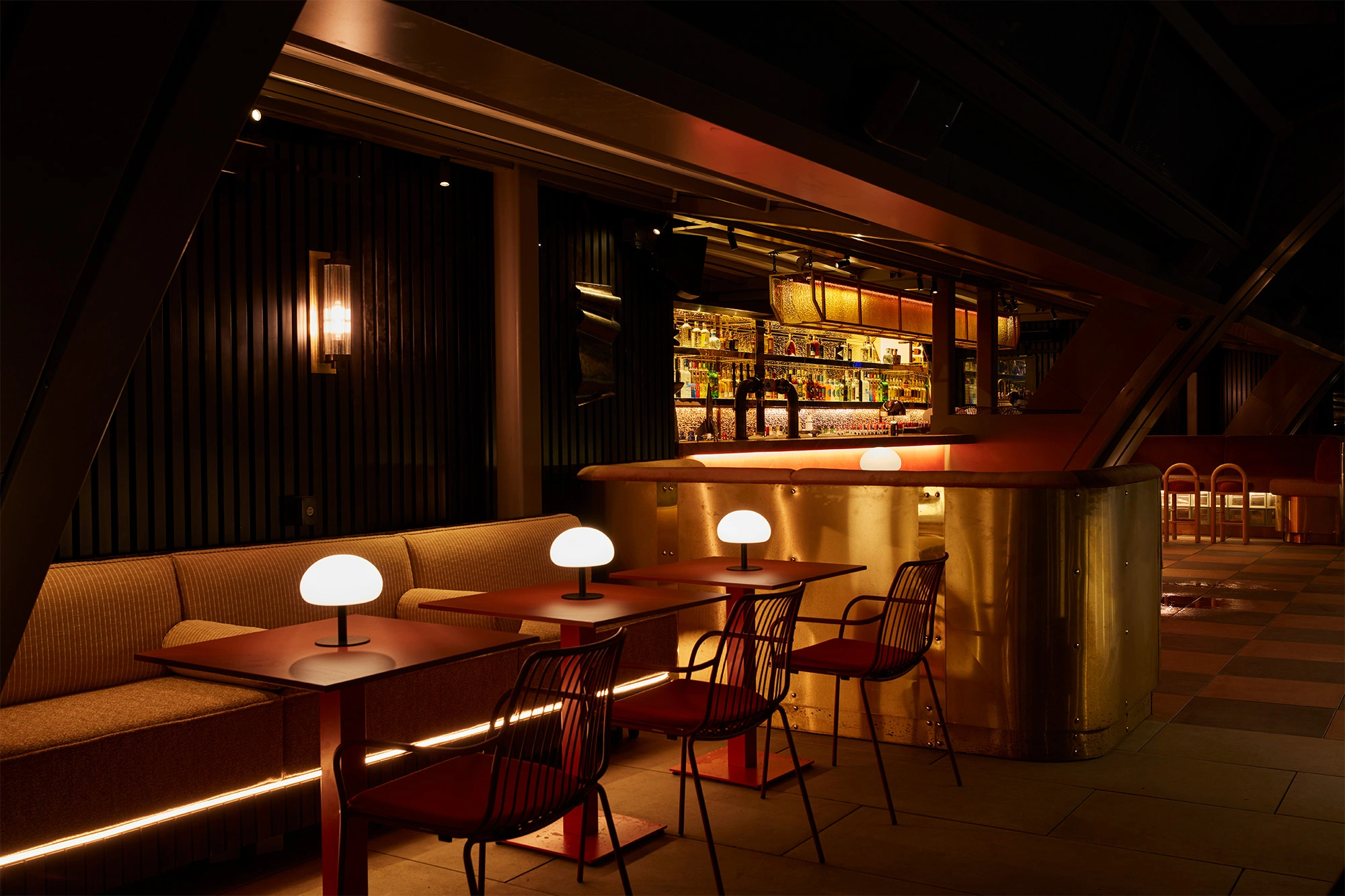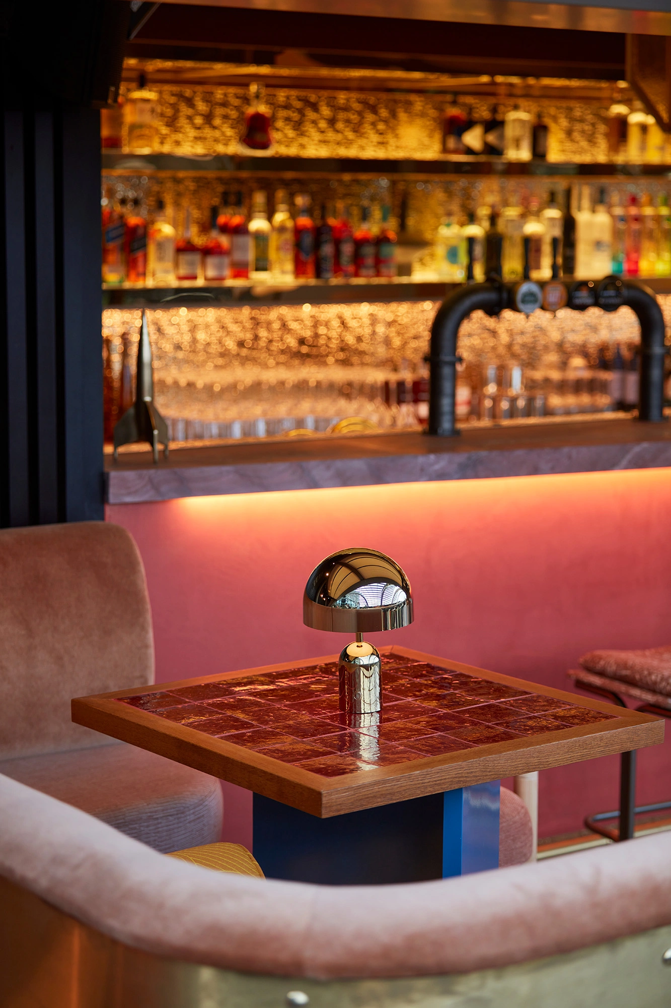 The chosen logo has a subtle quirk — a gentle lean to the left — which gave it an offbeat elegance. We embraced this idiosyncrasy to create a dynamic, repeating pattern that became a versatile brand device. It weaves its way through the venue, appearing on coasters, the drinks menu, and even a bespoke carpet in each of the screening rooms.